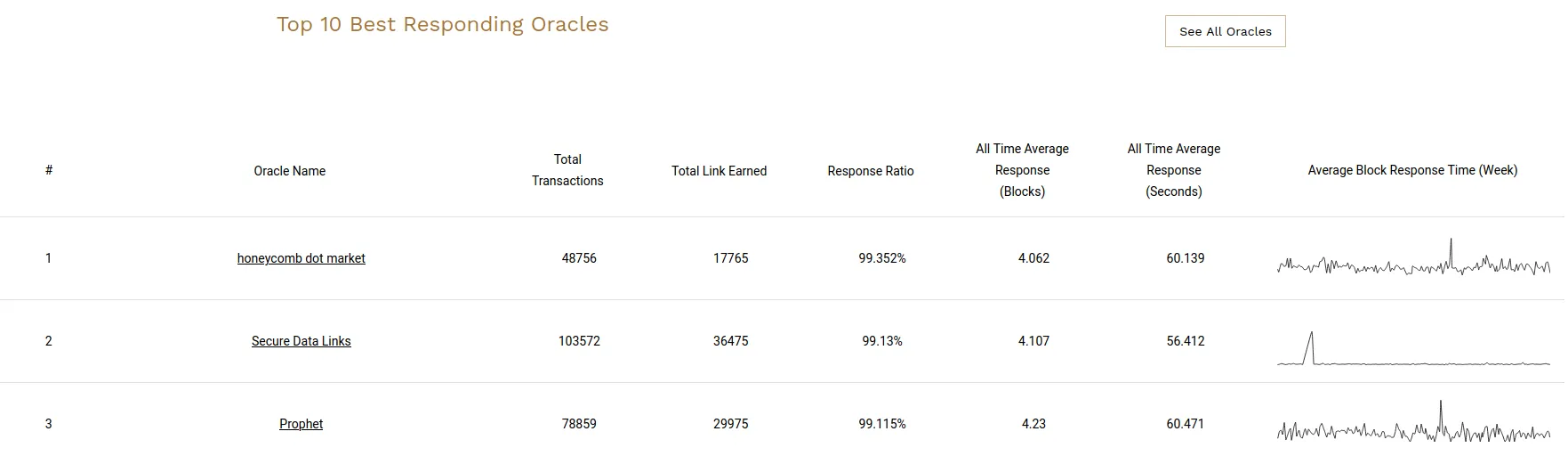 We have been providing oracle services as early as 2019, and were listed as the best responding oracle among all Chainlink oracles by reputation.link as of September 2020, which is when we published the Api3 whitepaper and requested to be removed from Chainlink data feeds. An important driving factor for this was our insight into systemic issues that could harm users and our confidence in building a better solution. With this understanding, we designed our architecture and operations from the ground up, leading to our current performance.